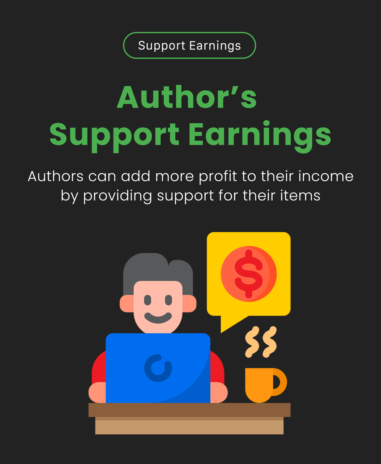 Authors can add more profit to their income by providing support for their items.