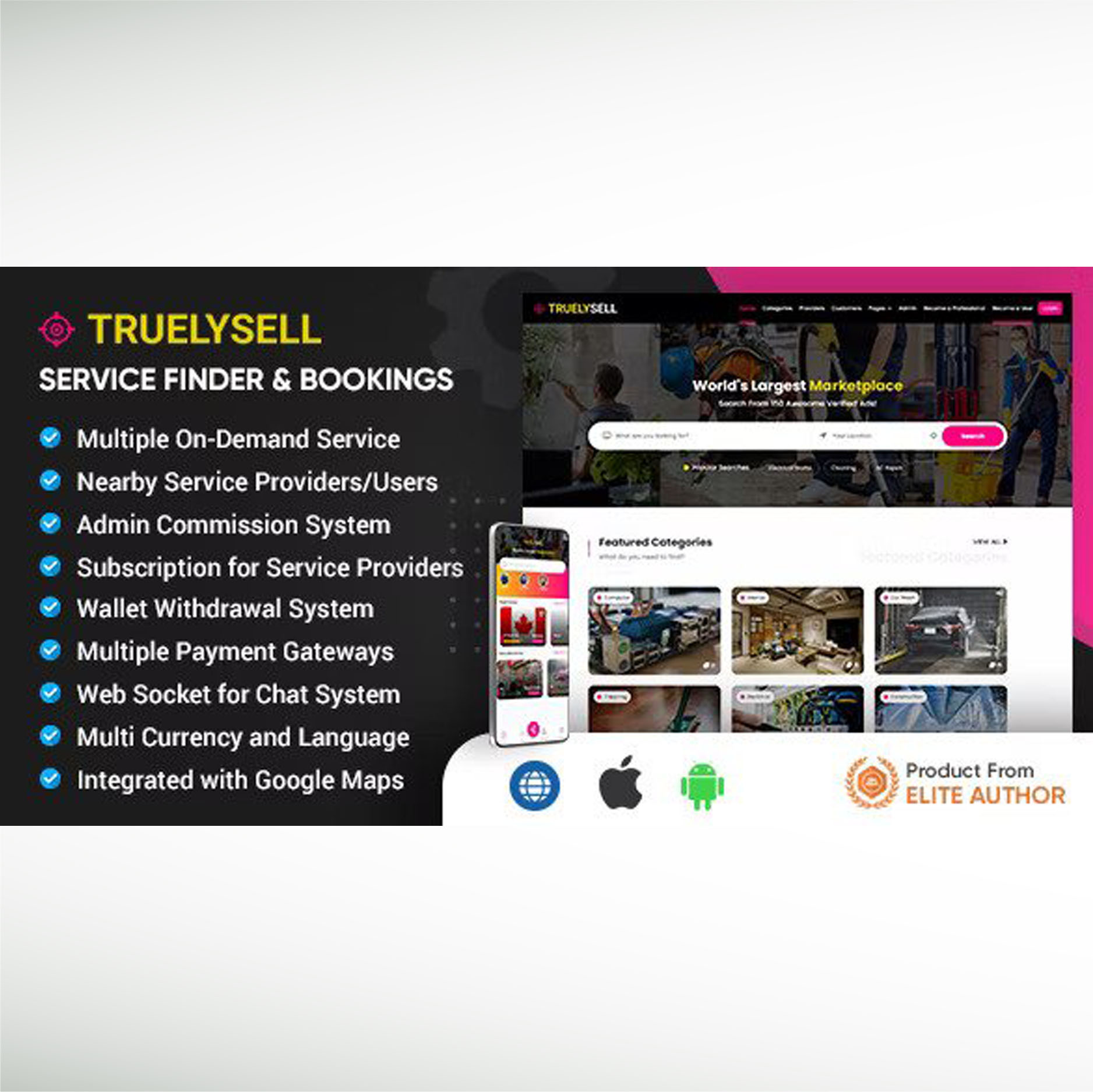 TruelySell V2.1.7 On demand Service Marketplace, Nearby Service Booking Software (Web + Android + iOS) Free Download