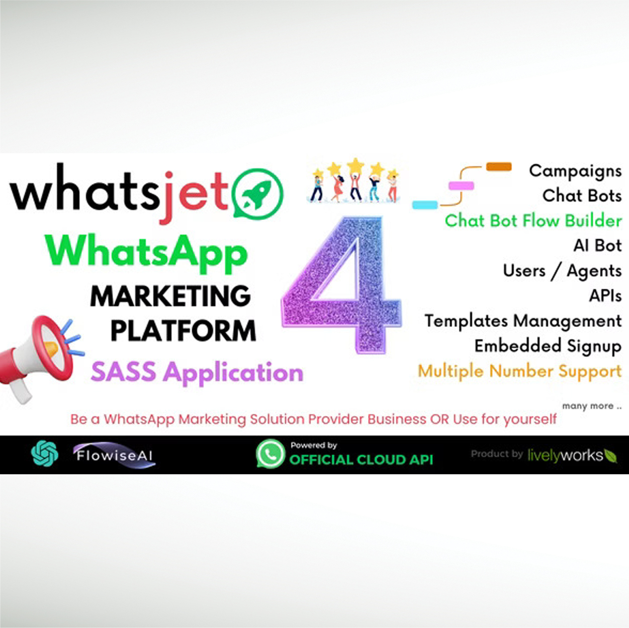 Empower your entrepreneurial dreams with WhatsJet – the ultimate solution for aspiring WhatsApp Marketing Service Providers! With WhatsJet, you can effortlessly launch your own WhatsApp Marketing business and start earning revenue immediately. Leveraging the powerful WhatsApp Cloud API, WhatsJet eliminates the need for costly infrastructure, ensuring a seamless and cost-effective solution for your venture.